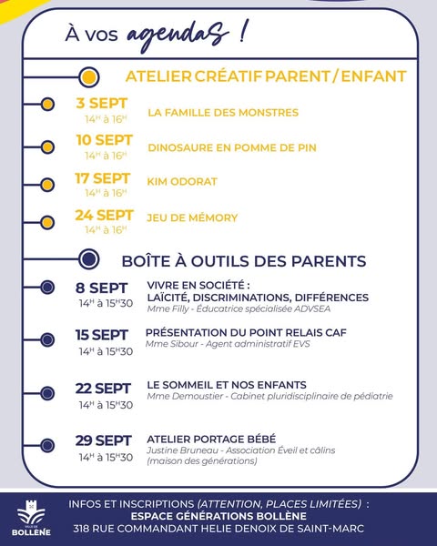 Chaque mois, l'Espace Générations Bollène propose de partager des moments conviviaux entre parents et professionnels.