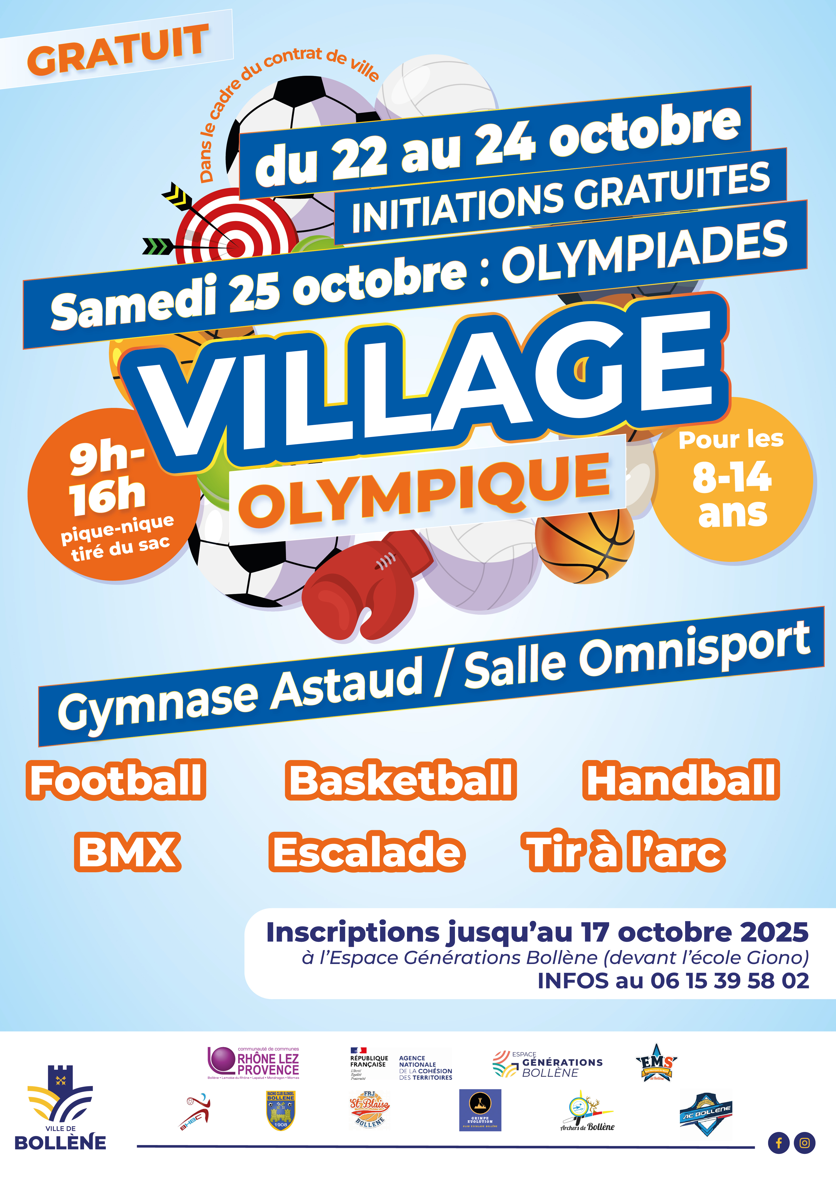 Village olympique – Inscriptions jusqu'au 17 octobre