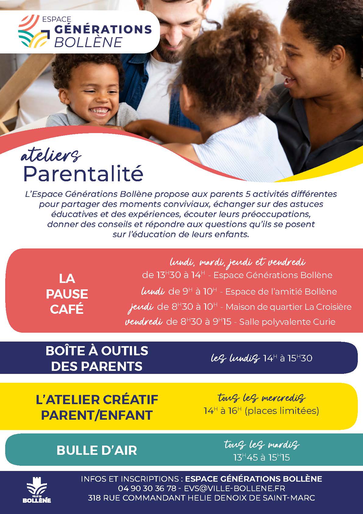 Retrouvez le programme et les détails sur https://ville-bollene.fr/fr/services/24/espace-de-vie-sociale