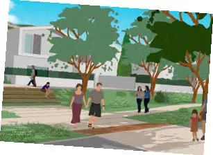 Un parc linéaire, véritable colonne vertébrale verte, proposera à la fois des usages récréatifs et une fonction hydraulique. Autour de lui, des venelles piétonnes sécurisées favoriseront les mobilités douces et le lien entre habitants. Plus de 5 200 m² d’espaces publics seront ainsi créés, soit près d’un tiers de la surface totale du quartier.